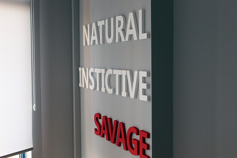 Literele din polistiren au fost lipite cu silicon transparent in urma unui sablon de montaj. O solutie estetica si foarte usoara, ideala pentru signalistica de interior.
