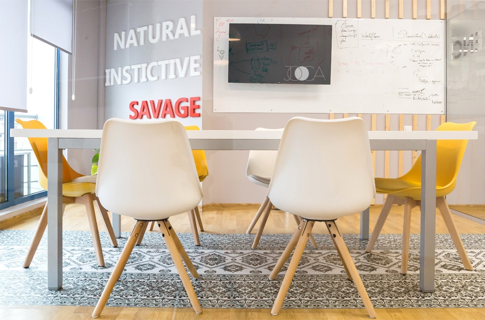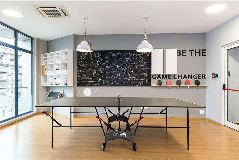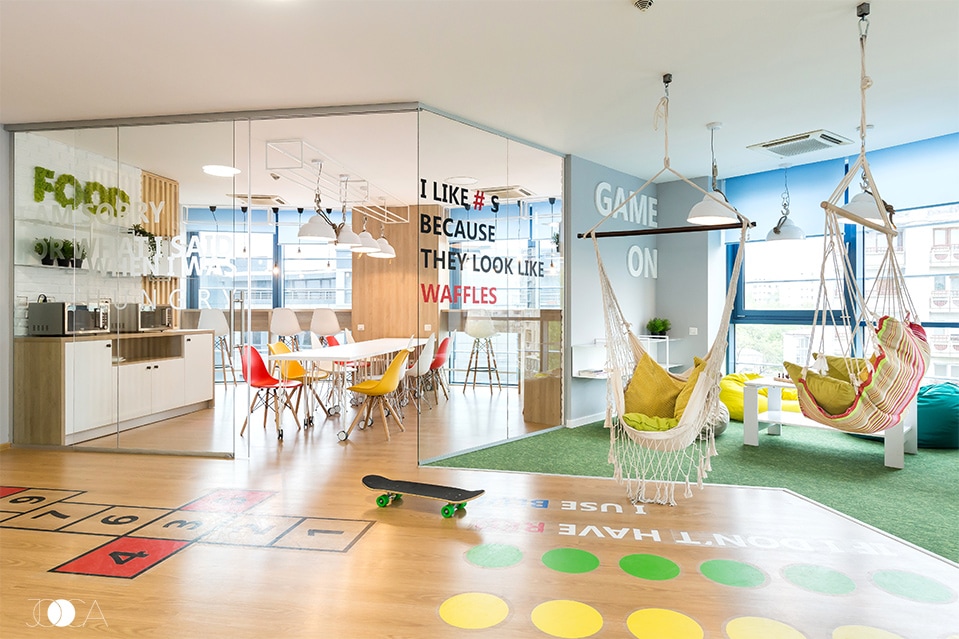 Arhitectele de la Jooca Studio au gandit o tematica diferita pentru fiecare sala de conferinta insa au pastrat acelasi concept. O atmosfera relaxanta de vacanta.
