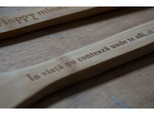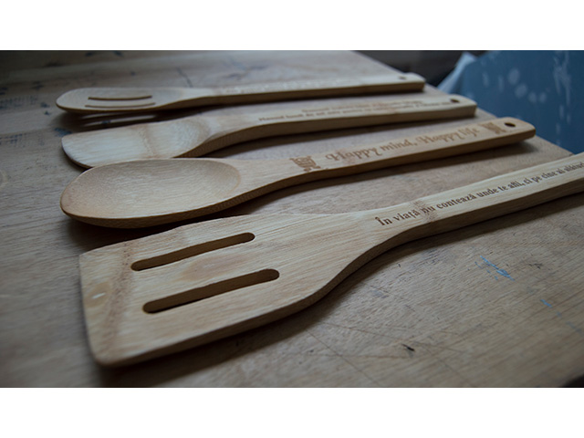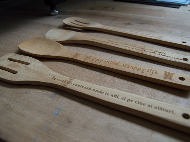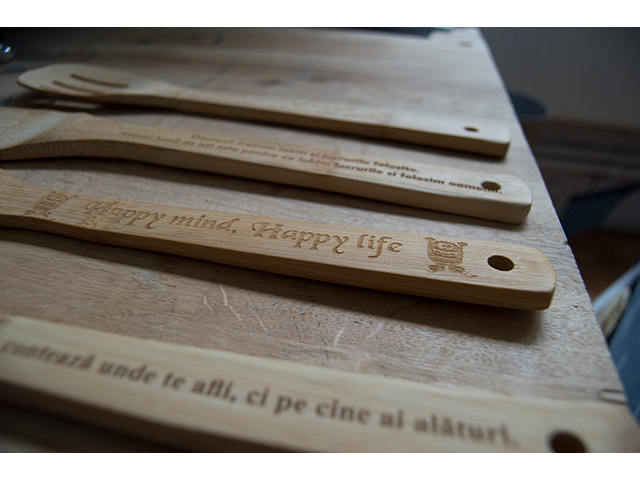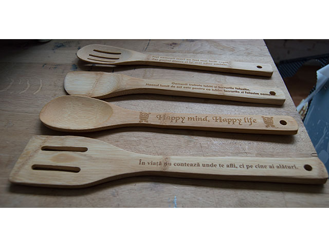 Un set de 4 linguri din lemn si gravate laser cu mesaje motivationale. Toate produsele din oferta noastra sunt realizate doar pe baza de comanda, sunt atent finisate/ verificate de angajatii nostri.